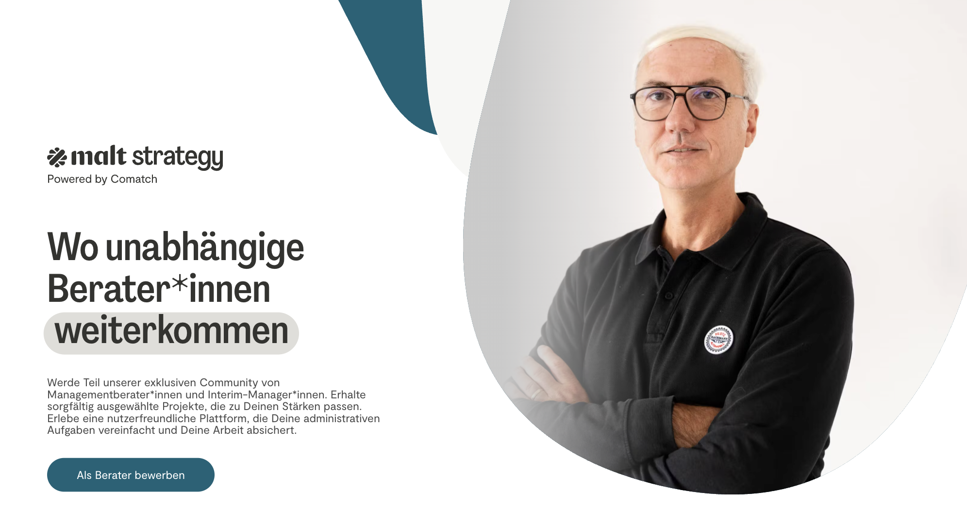 Im Reiter Malt Strategy wählen Sie die Option Für Berater und Interim-Führungskräfte aus und klicken dann auf „Bei Malt Strategy bewerben“.