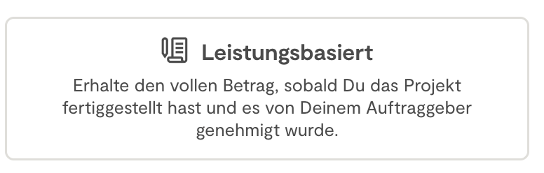 Wenn Du es vorziehst, Deine Zahlung auf Basis von Meilensteinen oder Schritten aufzuteilen, empfehlen wir Dir, Deine Projekt und Dein Budget in mehrere aufgabenbasierte Projekte aufzuteilen. Auf diese Weise kann Dein Kunde Dich im Laufe des Projekts auf Basis der vereinbarten Leistungen bezahlt.