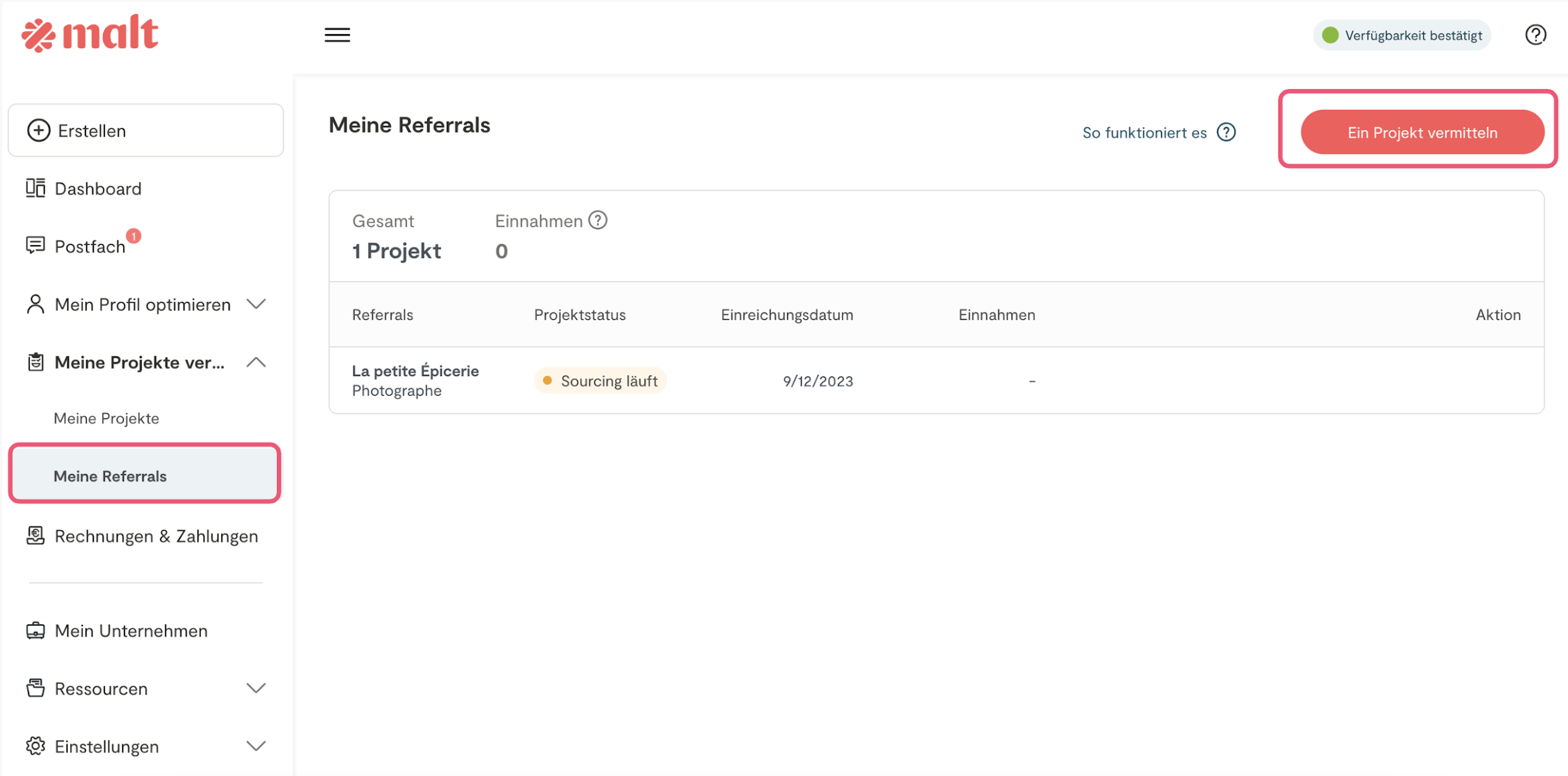 Du kannst den Fortschritt jeder von Dir auf der Plattform eingereichten Gelegenheit in Deinem Malt-Bereich verfolgen. Gehe einfach zum Abschnitt "Dashboard" und Du kannst Zahlungen verfolgen. Wir werden Dich auch proaktiv informieren.