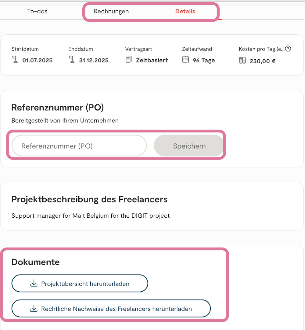 Das erleichtert deinem Finanzteam die Zahlungsabstimmung, da sie die interne Bestellnummer mit der Rechnungsnummer des Freelancers am Ende der Dienstleistung abgleichen können.