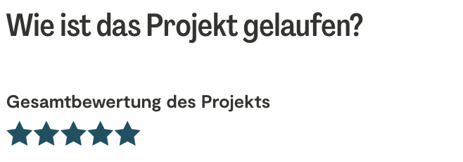 Bitte beachte, dass Kunden 30 Tage nach Projektende Zeit haben, eine Bewertung abzugeben. Danach ist es nicht mehr möglich, eine Bewertung hinzuzufügen oder zu ändern.