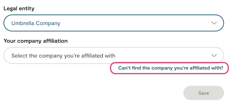 To appear in the drop-down menu, all umbrella company must provide all the KYC information and documents related to your legal structure and keep them updated.