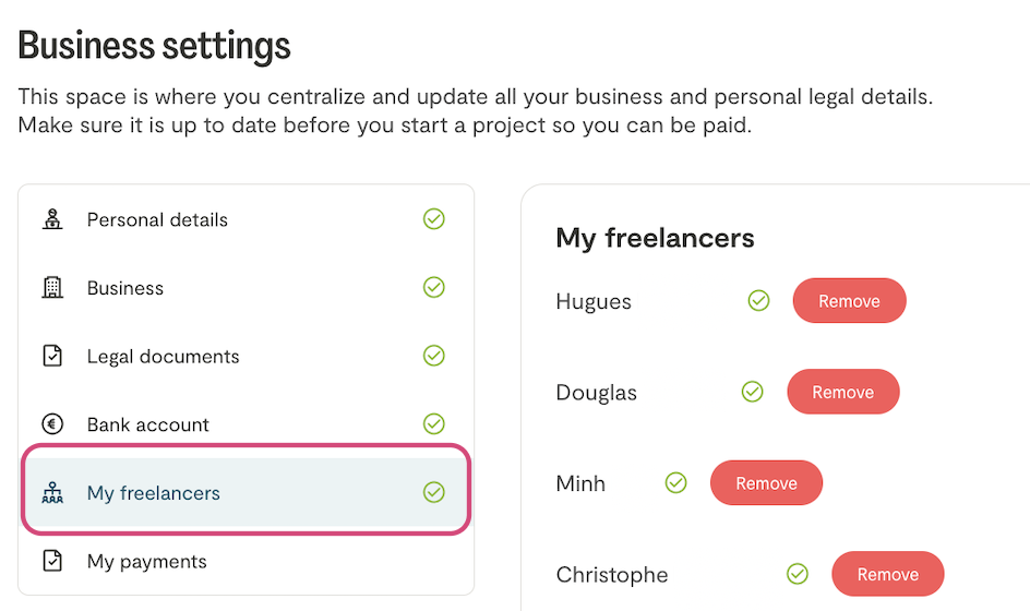 You no longer need to upload or update the legal documents of the umbrella company that represents you in your freelance space.
