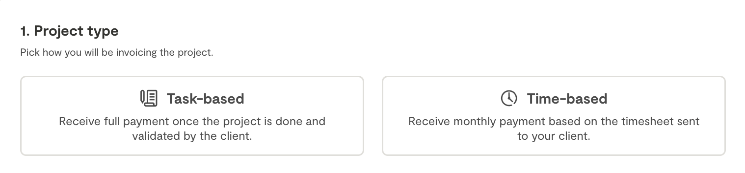 Depending on your project needs, you can choose between a task-based or time-based project.