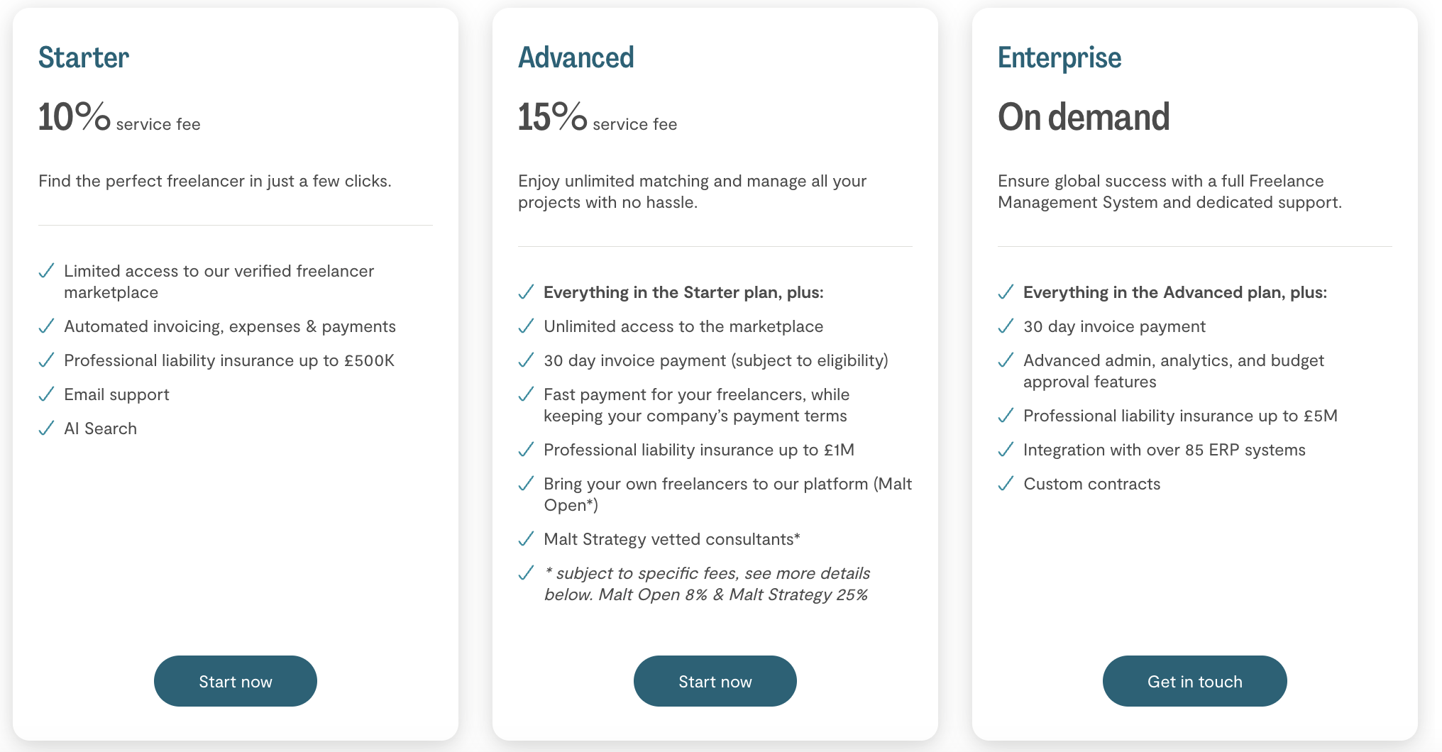 • 5% (excl. VAT): If your business relationship with a client lasts more than six months, Malt’s commission drops to 5%.