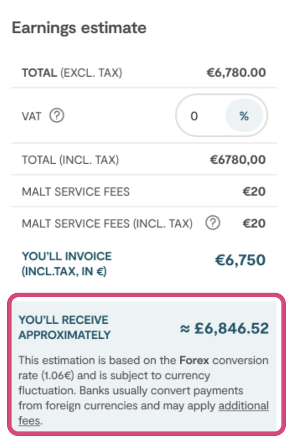 The amount you receive may vary due to exchange rate changes, which Malt does not control.