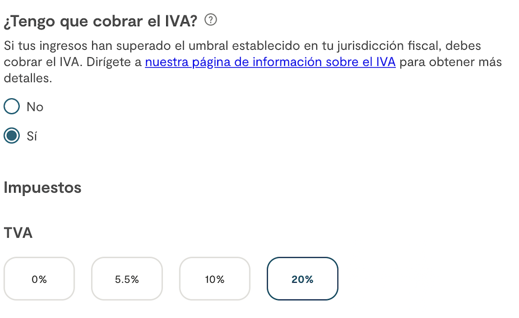 • Visita nuestra página de información sobre el IVA para encontrar el umbral exacto de tu jurisdicción.