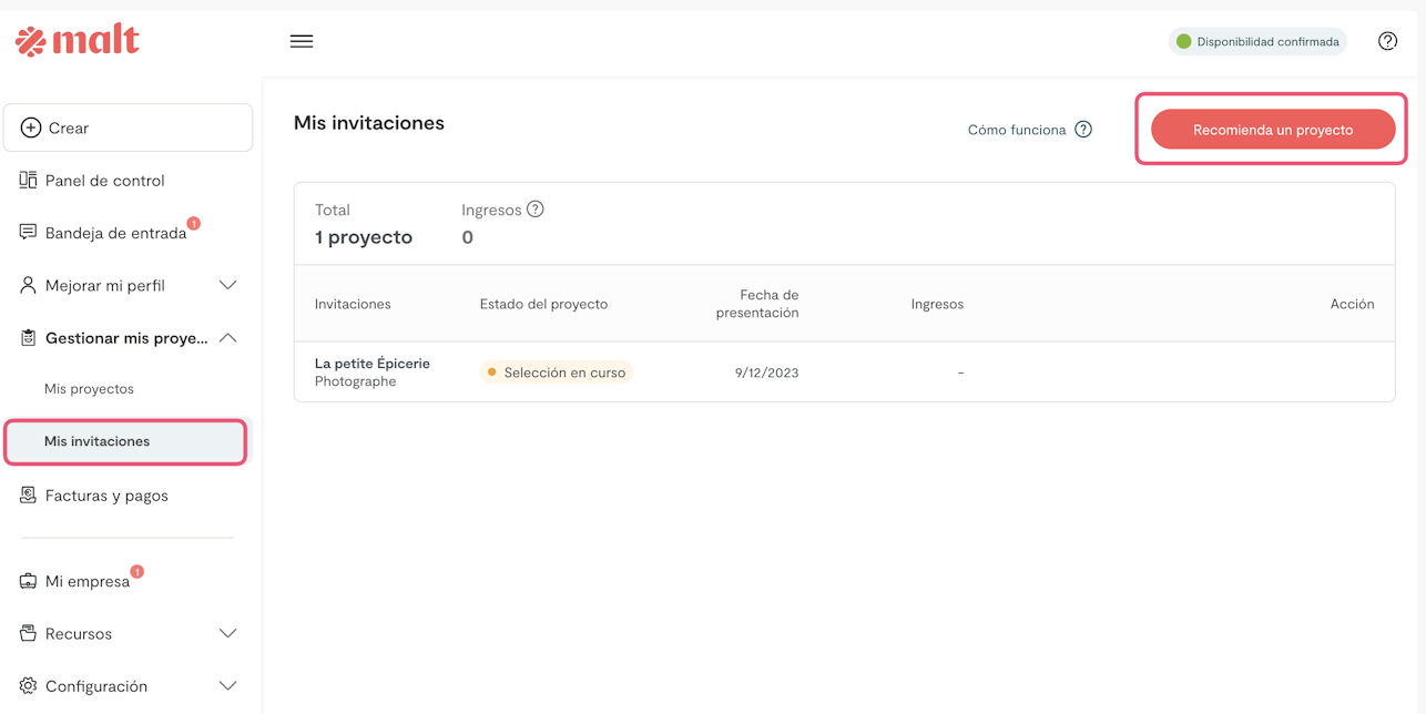Puedes seguir el progreso de cada oportunidad que envíes a la plataforma en su espacio Malt. Sólo tienes que ir a tu Panel de Control y podrás seguir los pagos. También te mantendremos informado de forma proactiva.