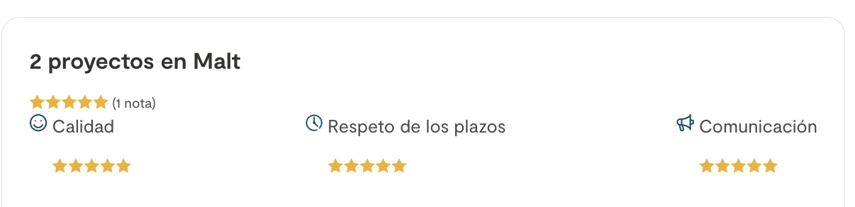 La reputación de los freelancers es importante, y con Malt pueden mostrar su experiencia y construir su reputación online. Gracias a los clientes. quienes previamente han depositado su confianza en ellos y les han dejado una reseña, pueden desarrollar su negocio y capitalizar su reputación.