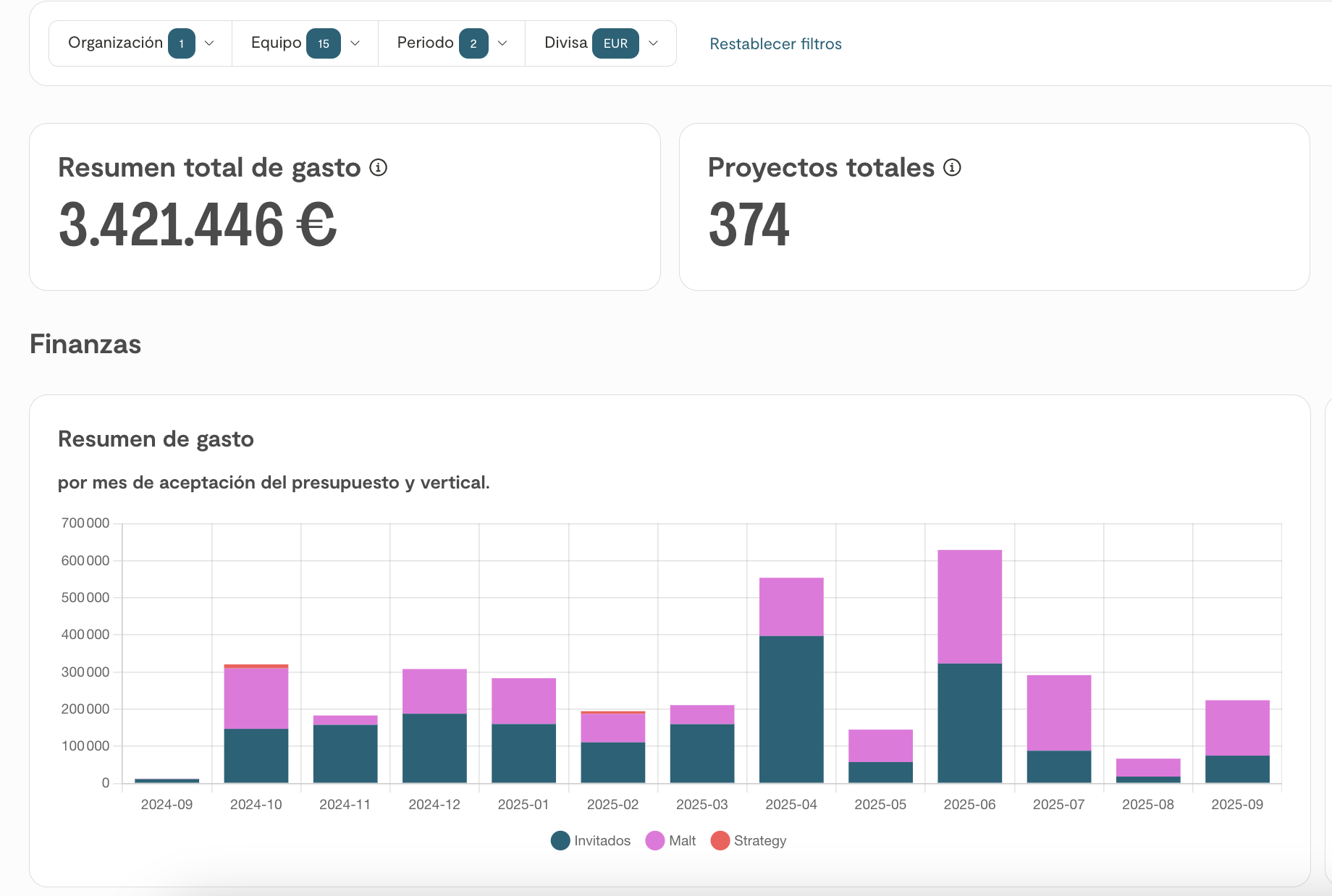Visibility on budgets and spend is key for you to make well informed decisions. With Malt’s advanced La visibilidad de los presupuestos y los gastos es fundamental para tomar decisiones bien fundamentadas. Con las funciones avanzadas de generación de informes de Malt, siempre tendrá una visión general completa de sus gastos, su personal autónomo y su estado de cumplimiento.