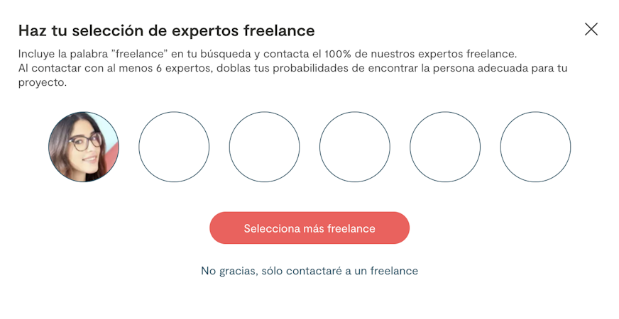 - Haz clic en “Seleccionar más freelancers” para volver a los resultados de búsqueda.