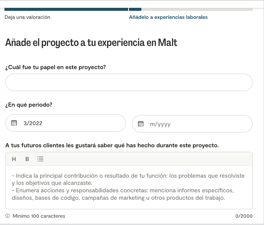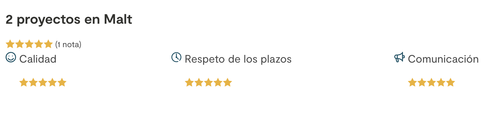 La insignia "On Malt" es una nueva función que aparece en tu perfil para identificar las experiencias de proyectos que se han completado a través de nuestra plataforma Malt.
