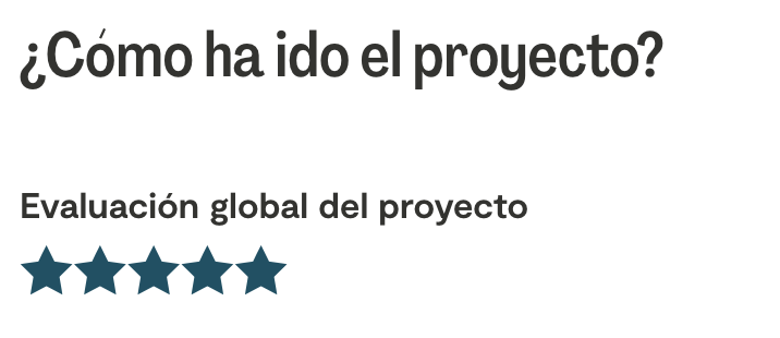 Una vez validado el final del proyecto por tu cliente, tienes la oportunidad de valorar tu colaboración y dejar el comentario correspondiente.