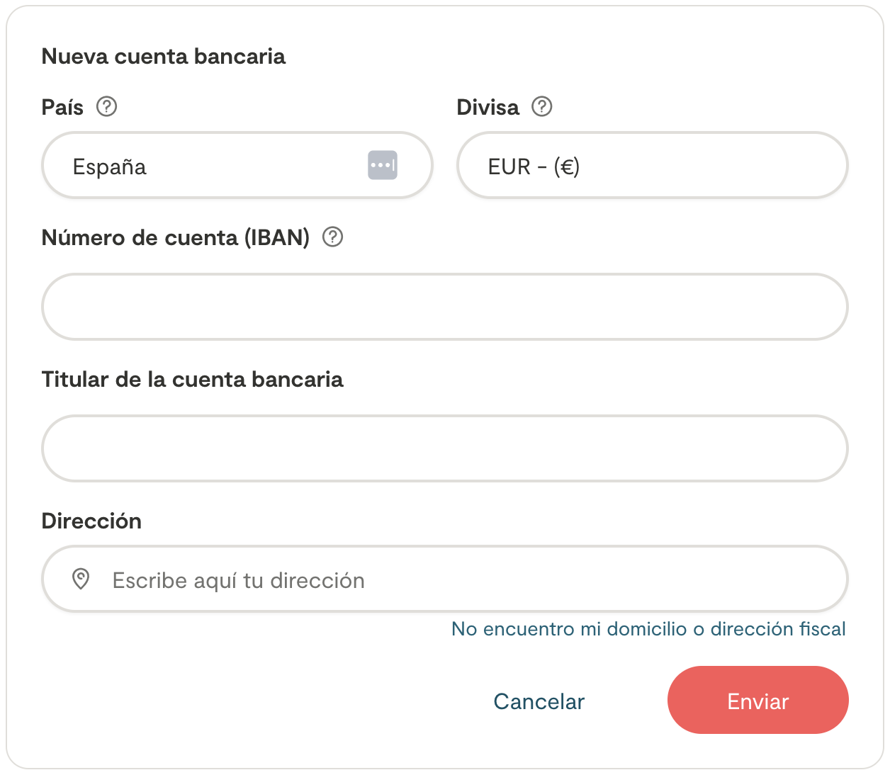 A continuación, introduce tu IBAN (si estás en Europa) o el número de cuenta correspondiente según el formato de tu región.