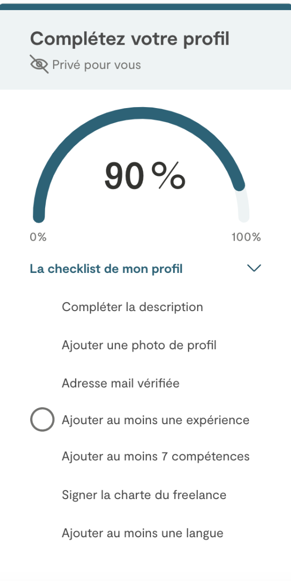 Les profils de la catégorie Malt Strategy ne seront jamais visibles dans le moteur de recherche, les clients ne pourront donc pas vous contacter directement. Les propositions sont toujours examinées avec attention par notre équipe de recrutement, qui vous contactera afin de vérifier votre intérêt et votre disponibilité pour un projet. Pour vous assurer de recevoir les meilleures opportunités, veillez à maintenir votre profil et vos disponibilités à jour.