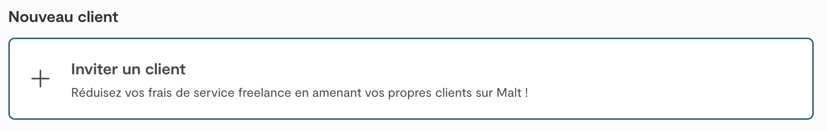 Si le client dispose déjà d’un compte Malt, les frais standards s’appliqueront à votre projet, même si vous l’avez invité depuis votre tableau de bord.