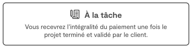 • Pour les autres, le client doit prépayer le montant total avant le démarrage. Vous serez payé immédiatement après la validation du projet.