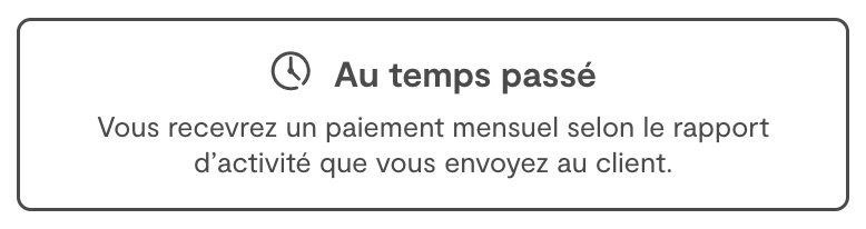 Vous facturez mensuellement en fonction du nombre réel d’heures ou de journées travaillées. Vous devez transmettre chaque mois votre Compte rendu d'activité (CRA) afin que le client puisse le valider et libérer le paiement.