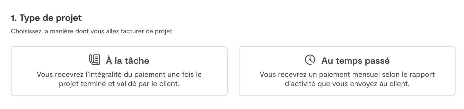 Selon les besoins de votre projet, vous pouvez opter pour un projet basé sur des tâches ou basé sur le temps. Ci-dessous, nous vous expliquons chaque type afin que vous puissiez choisir la meilleure option lors de l’envoi de votre devis au client.