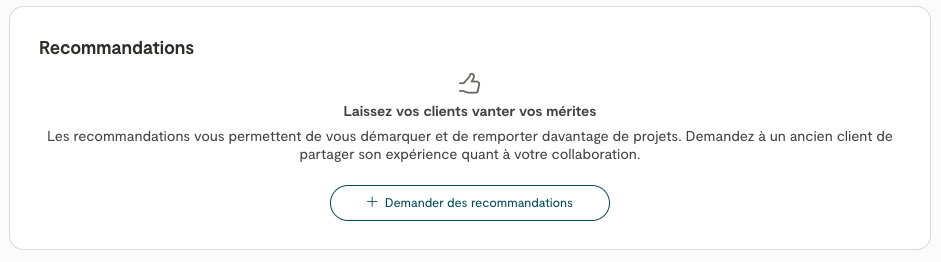 Les recommandations sont un excellent moyen pour les freelances de renforcer la confiance des chefs de projet. Lorsqu’un freelance vous demande une recommandation externe, vous recevrez une invitation par e-mail. Il vous suffit alors de cliquer sur le lien pour commencer.