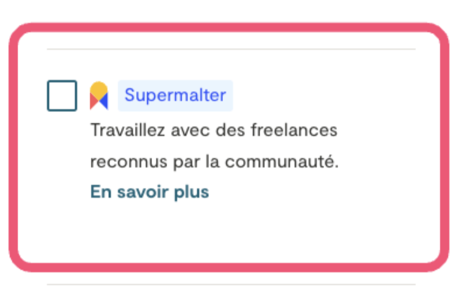 Vous pouvez filtrer vos recherches pour afficher uniquement les Super Malters, afin d’identifier les freelances les plus fiables correspondant à vos besoins.