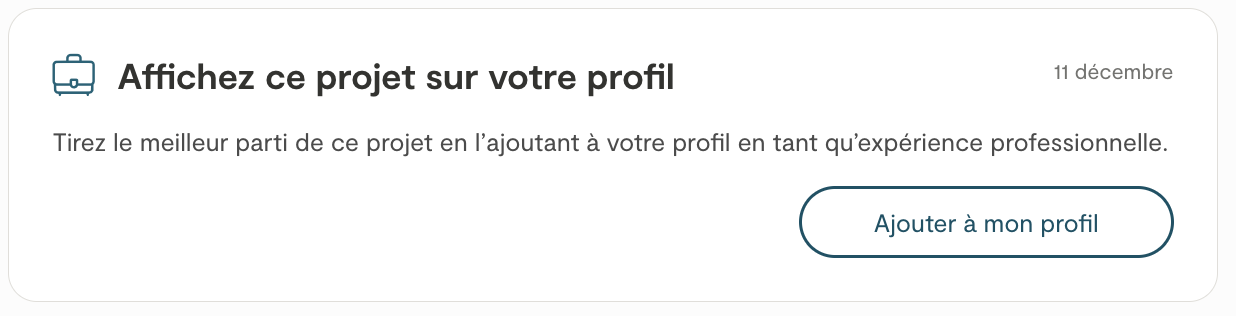 Chaque avis de projet est affiché individuellement sur votre page de profil, incluant la note et le commentaire (s’il y en a un). Cela permet aux clients de voir le détail de tous les retours que vous avez reçus.