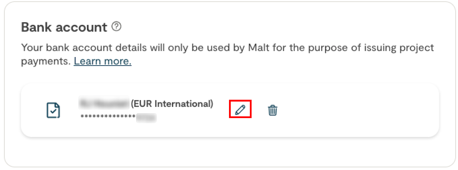 Une fois les étapes de vérification terminées, votre compte est configuré pour les paiements dans une devise. Cliquez sur le bouton de modification pour lancer le processus de configuration d'un second compte bancaire.
