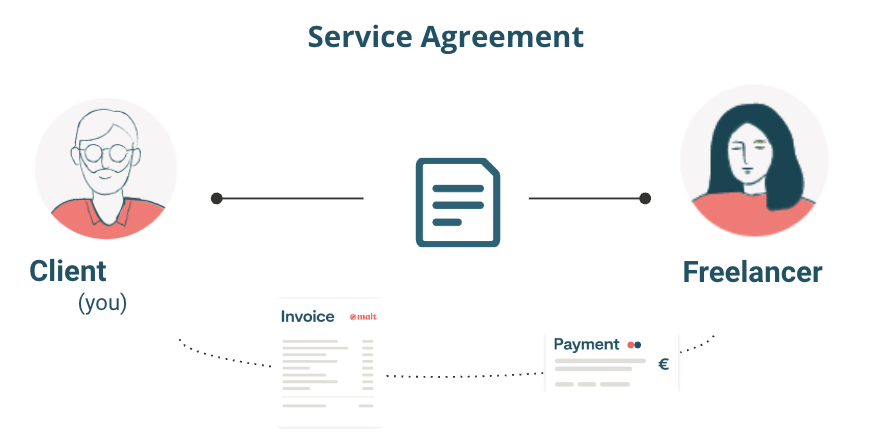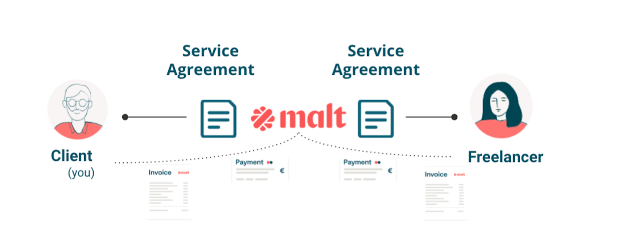 Malt unterzeichnet einen Rahmenvertrag mit dem Kunden und vergibt die Dienstleistungen dann in einem Spiegelvertrag an den Freelancer.