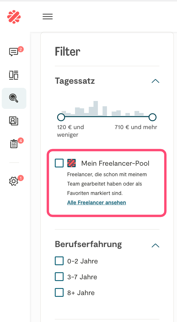 Sie können diese Freelancer finden, indem Sie Ihre Suche nach dem Kriterium „Super Malter“ filtern, um nur die Super Malter-Freelancer anzuzeigen, die Ihren Suchbegriffen entsprechen.
