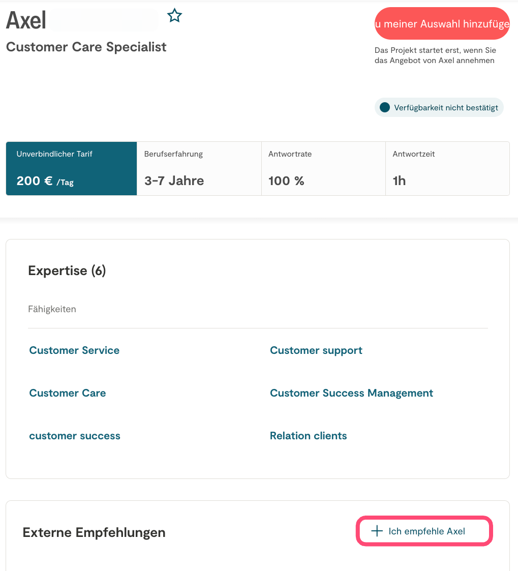 Wie hinterlasse ich eine externe Empfehlung im Profil eines Freelancers?
