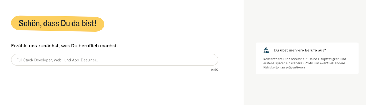 Wenn Du Deine Dienste auch als Freelancer anbieten möchtest, kannst Du jetzt schnell und intuitiv einen Account erstellen.