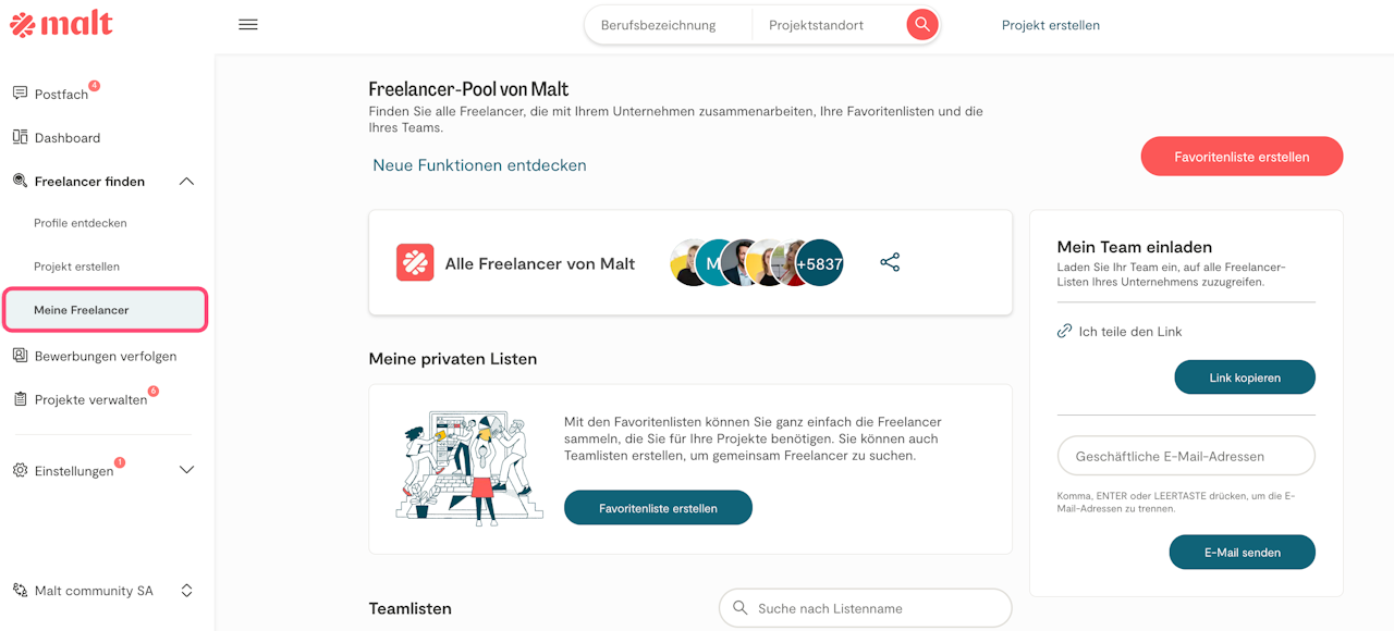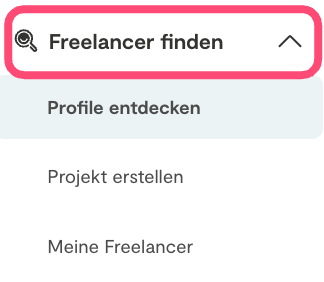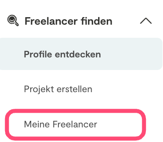 Unter der Registerkarte „Freiberufler finden“ findest Du alle Funktionen, die Dir Folgendes ermöglichen: