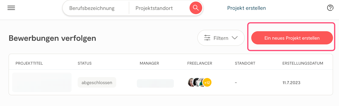 Im Reiter „Aufträge verwalten“ findest Du alle Projekte, für die Du Freelancer direkt über unsere Suchmaschine kontaktieren und Angebote erhalten haben.