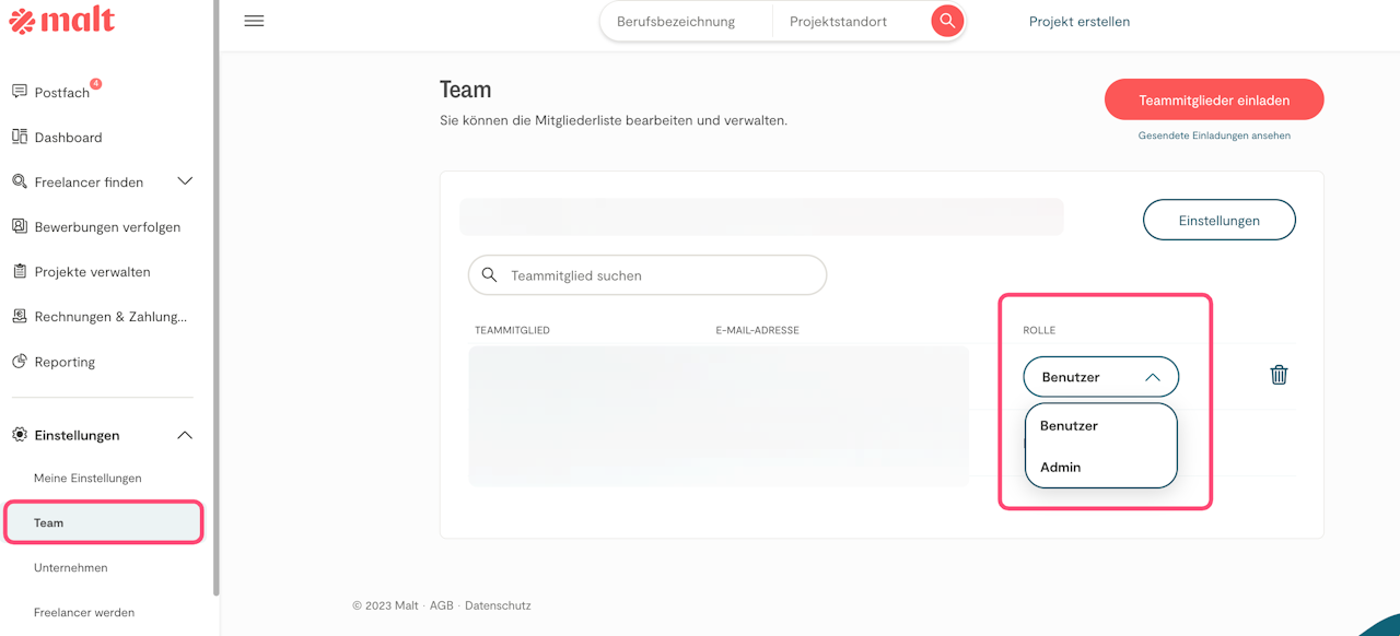 Auf dieser Registerkarte kannst Du die mit dem Firmenkonto verknüpften Mitarbeiter anzeigen oder je nach Status sogar verwalten