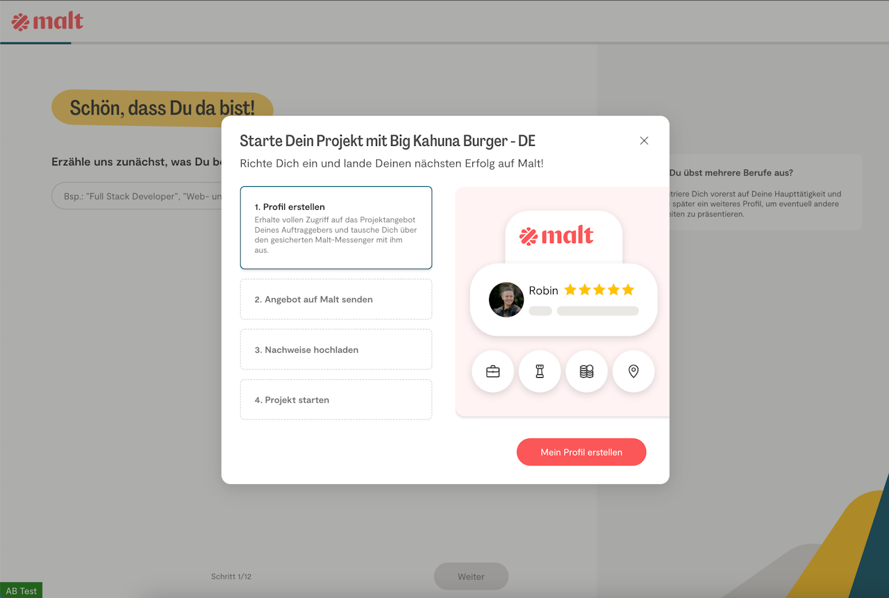 Du kannst Dich bei Malt registrieren, indem Du die auf der Plattform angegebenen Schritte befolgen:
