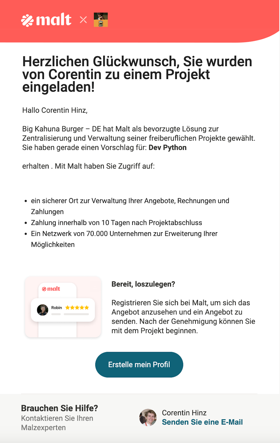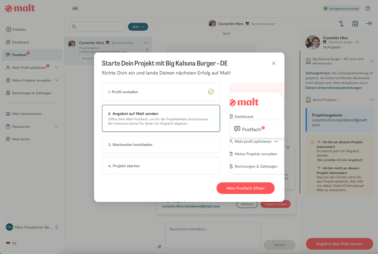 In dieser Phase musst Du zu Deinem Malt-Postfach gehen, um den Projektvorschlag anzuzeigen.