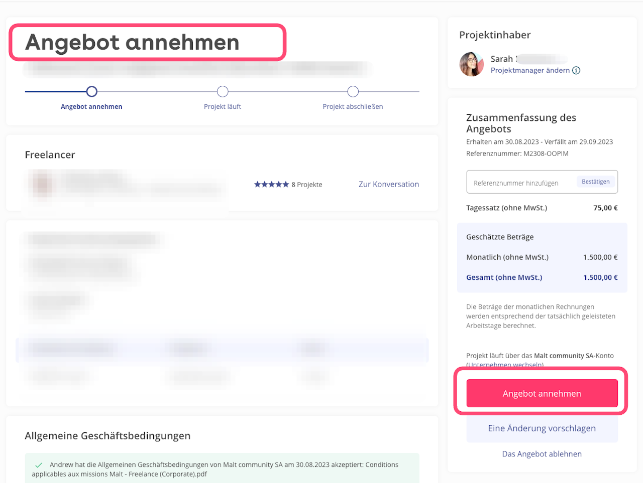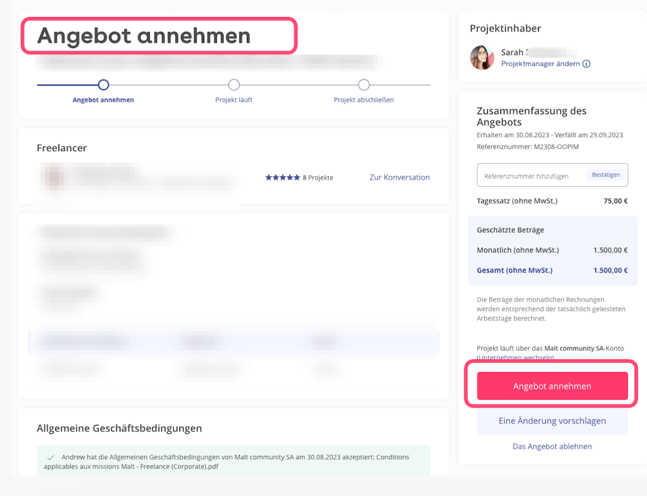 Wie nehme ich ein Angebot eines Freiberuflers an?