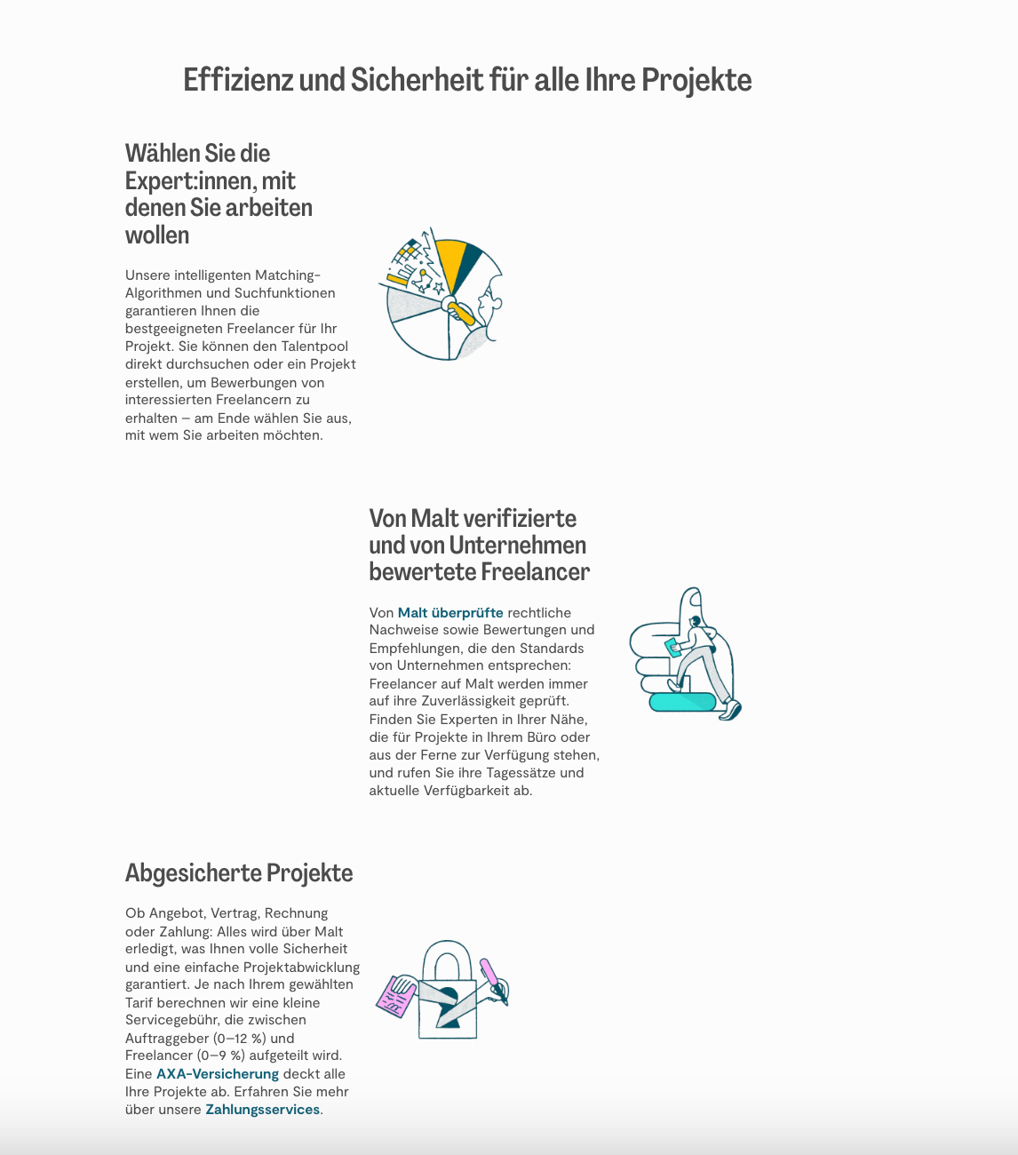 Mit Malt kannst Du in direkten Kontakt mit mehr als 500.000 auf der Plattform registrierten Freiberuflern treten und von einer Reihe von Tools und Diensten profitieren, um auf einfache und sichere Weise zusammenzuarbeiten.