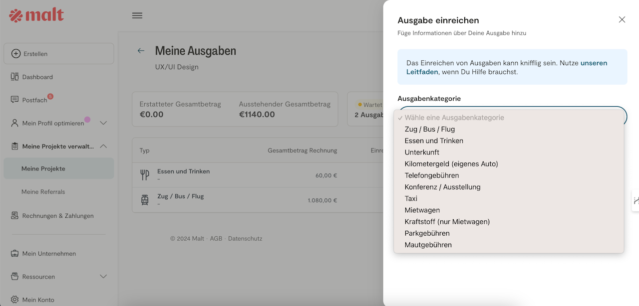 Wie erstelle ich Spesenabrechnungen auf Malt?