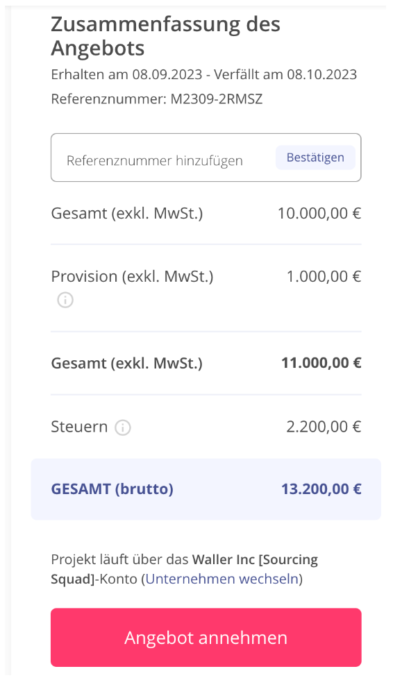 Der angezeigte Preis entspricht dem Preis, den der Freelancer für seine Arbeit verlangt.