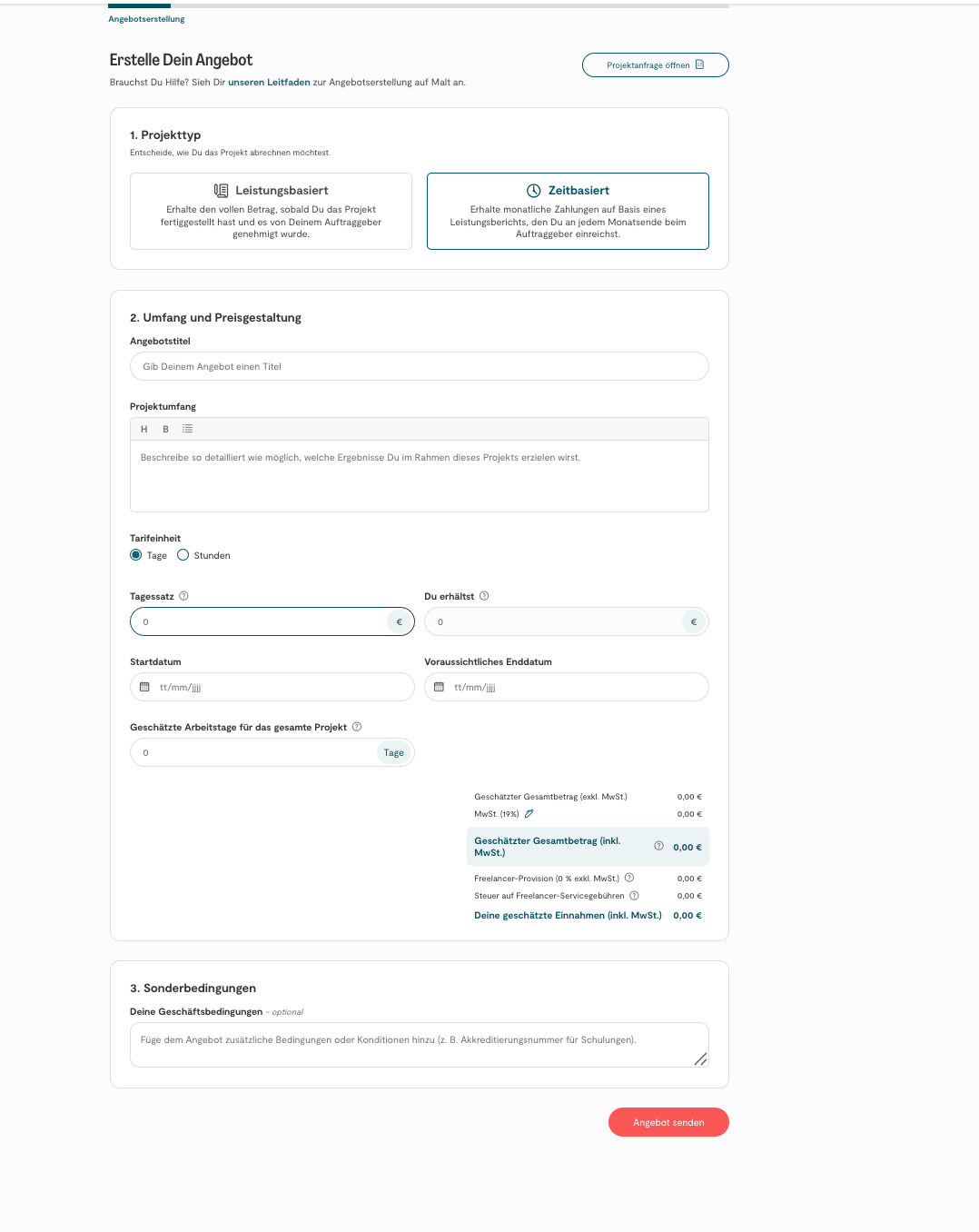 Du möchtest Dein erstes Angebot auf Malt erstellen? Brauchst Du Hilfe beim Ausfüllen aller Schritte und willst sichergehen, dass Du nichts übersehen hast?