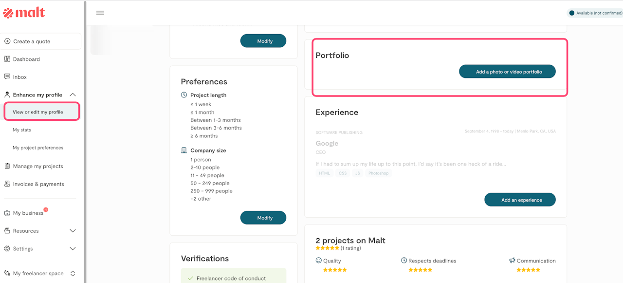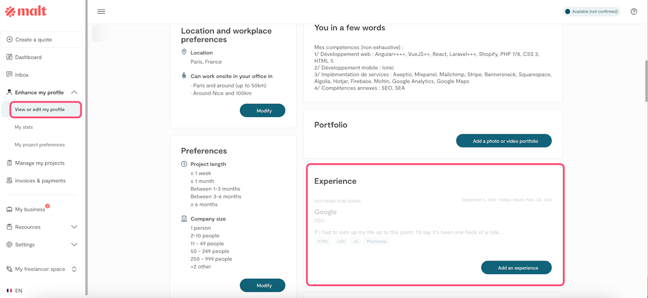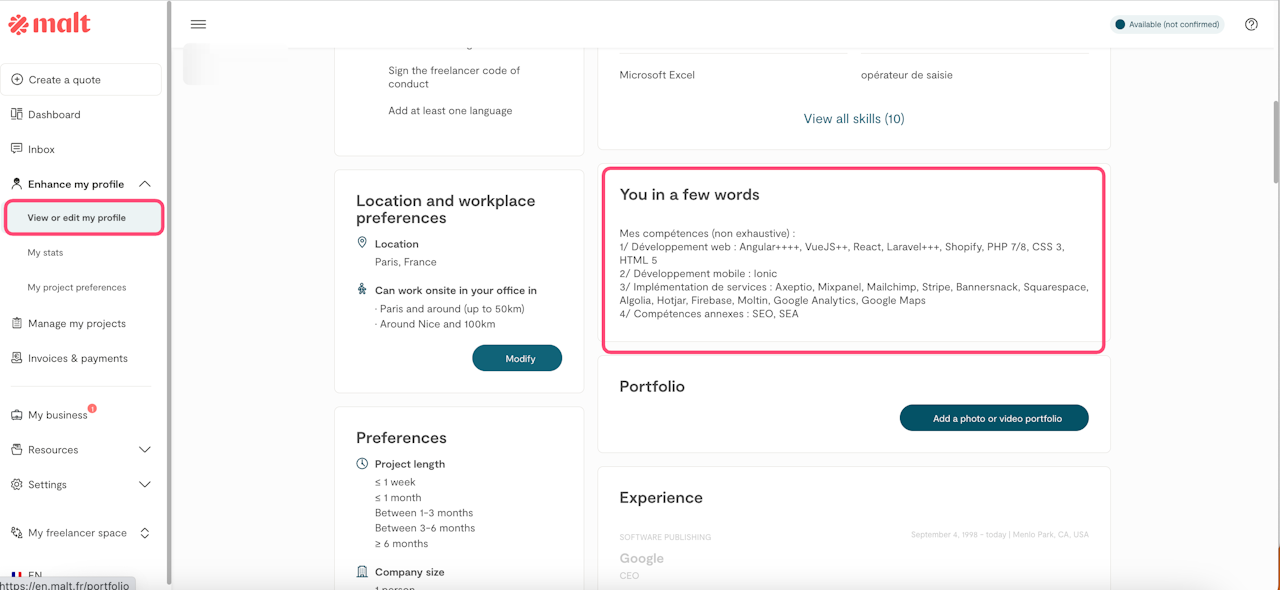 You can complete the information associated with your Malt profile using your LinkedIn profile or your CV. 🎉