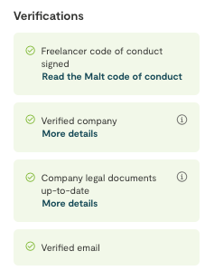 In order for freelancers to get paid for the work they do on Malt, they must provide specific legal documents that allow us (and our payment partners) to do the necessary due diligence to verify that they are currently in good legal standing. This is also done to protect you from falling prey to local laws and regulations concerning undeclared work.