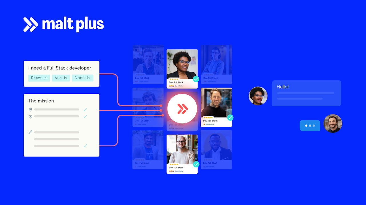 Malt Plus, is a mix between artificial intelligence and human support combined with an expert in recruiting freelancers.