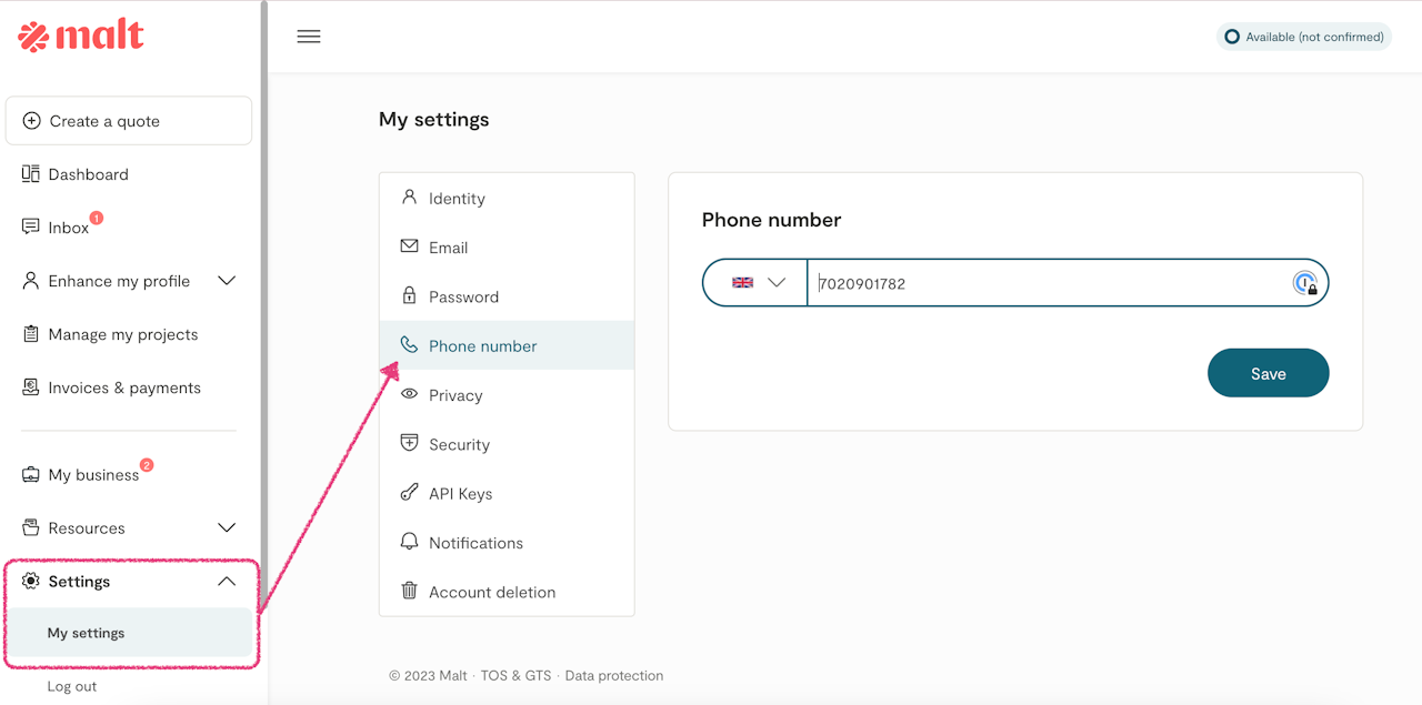 To modify or add your phone number, enter the "Settings" section and click on the "Phone" tab.