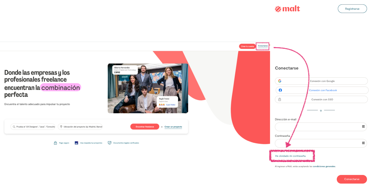 Indicate the email associated with your Malt account to receive the automatic email that will allow you to reset your password.