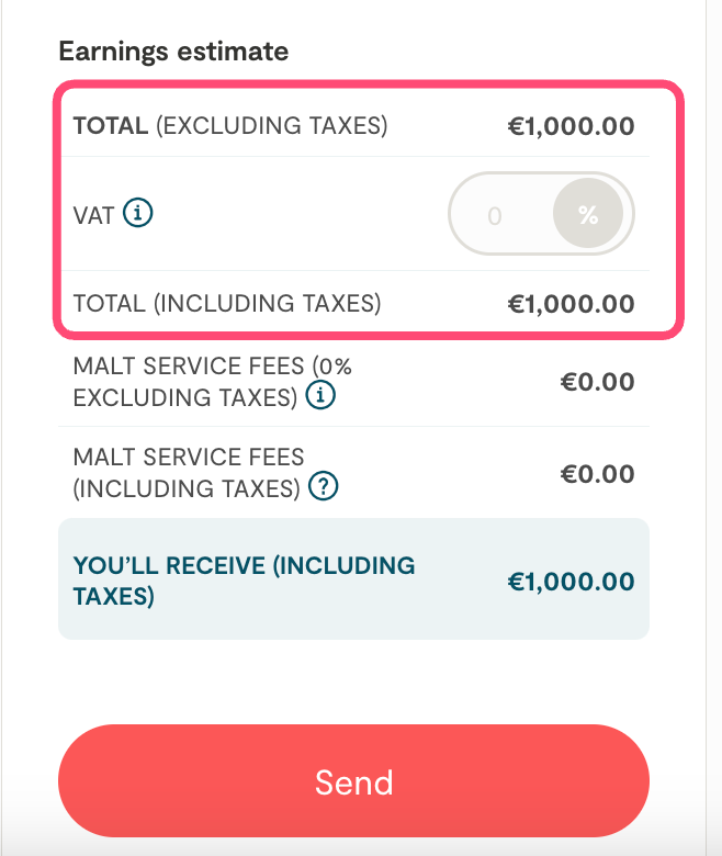 In the case of a task-based project, you can then modify the quote directly from the assignment URL and manually adjust the VAT to a rate of 20%.
