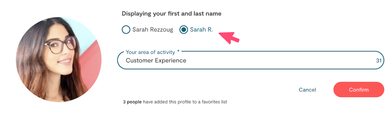 Your last name is visible on your Malt profile, but if you do not want it to appear on your profile for reasons that belong to you, you must go to the "edit my profile" tab and click on the field your first and last name.