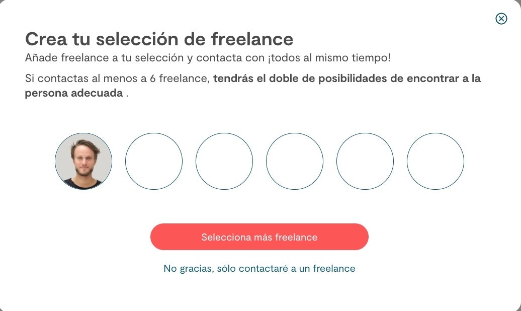 - Selecciona uno de ellos para saber más acerca de este candidato (experiencia, portfolio, proyectos realizados, herramientas que maneja,...), si crees que puede ser uno de tus candidatos, contacta con él haciendo click en “proponer un proyecto” .