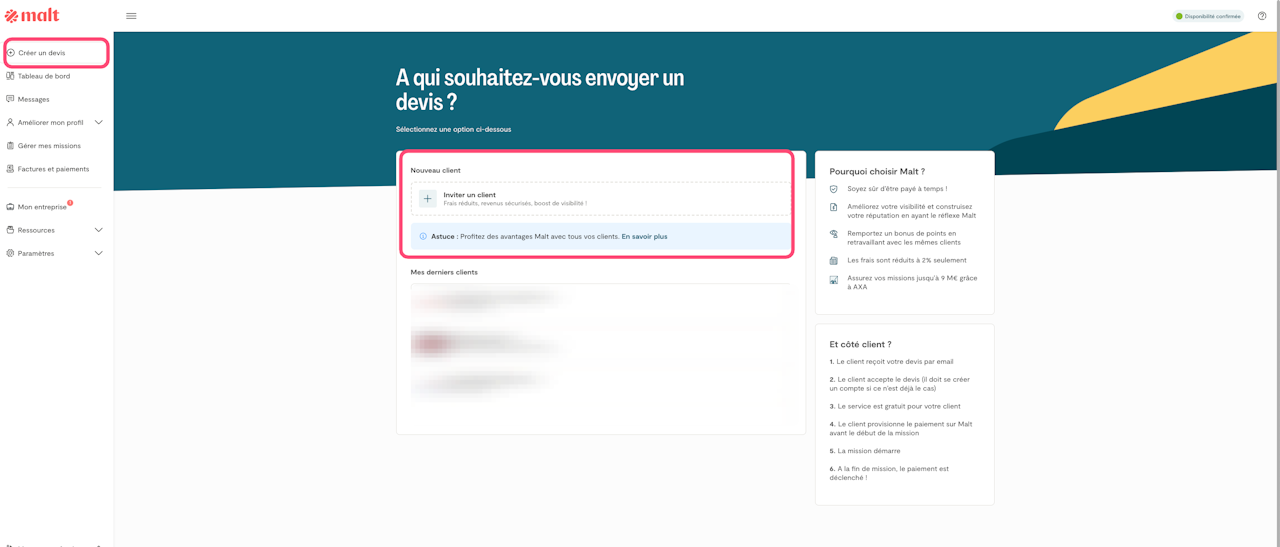 Inviter votre client pour réaliser la mission via Malt vous permet de :